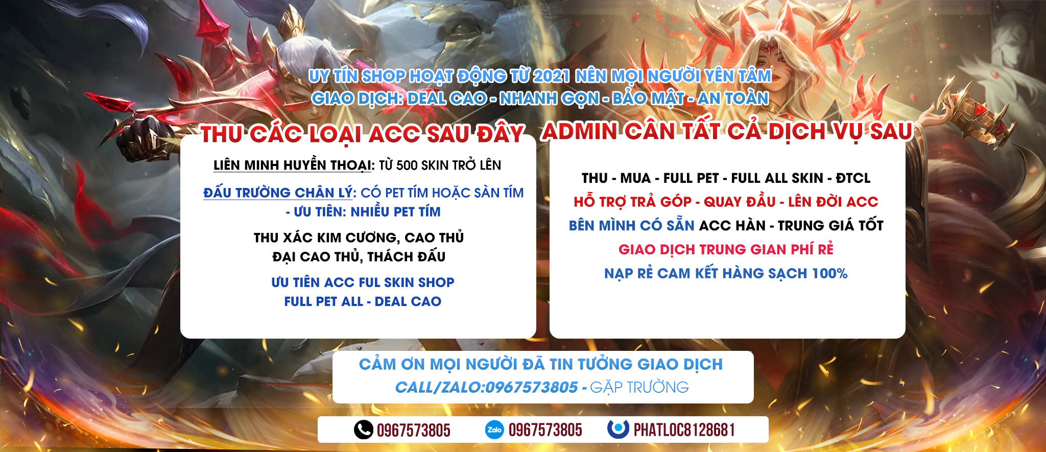 - Tất cả các tài khoản trên shop đều là tài khoản liên minh riot. Anh em mua acc vui lòng đăng nhập riot không phải đăng nhập garena. !!!